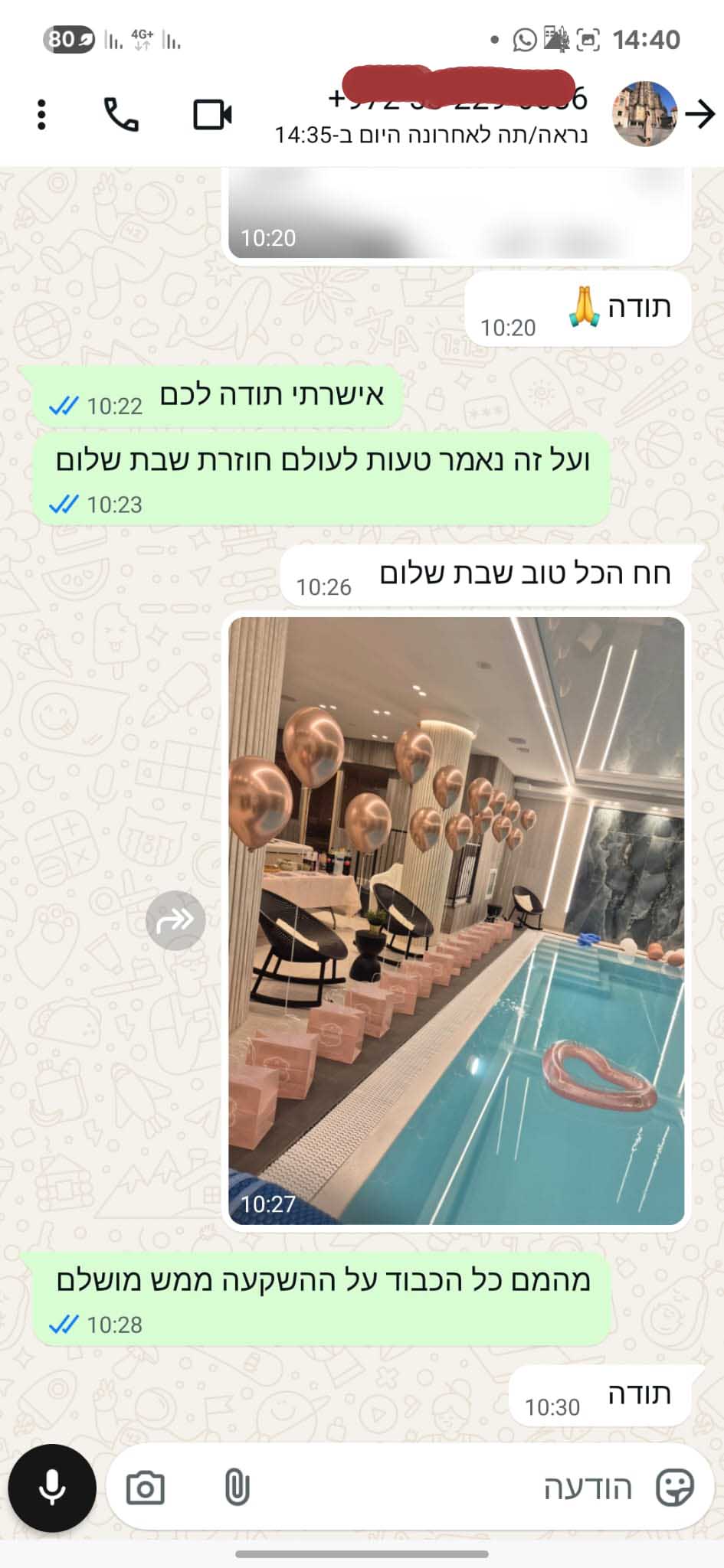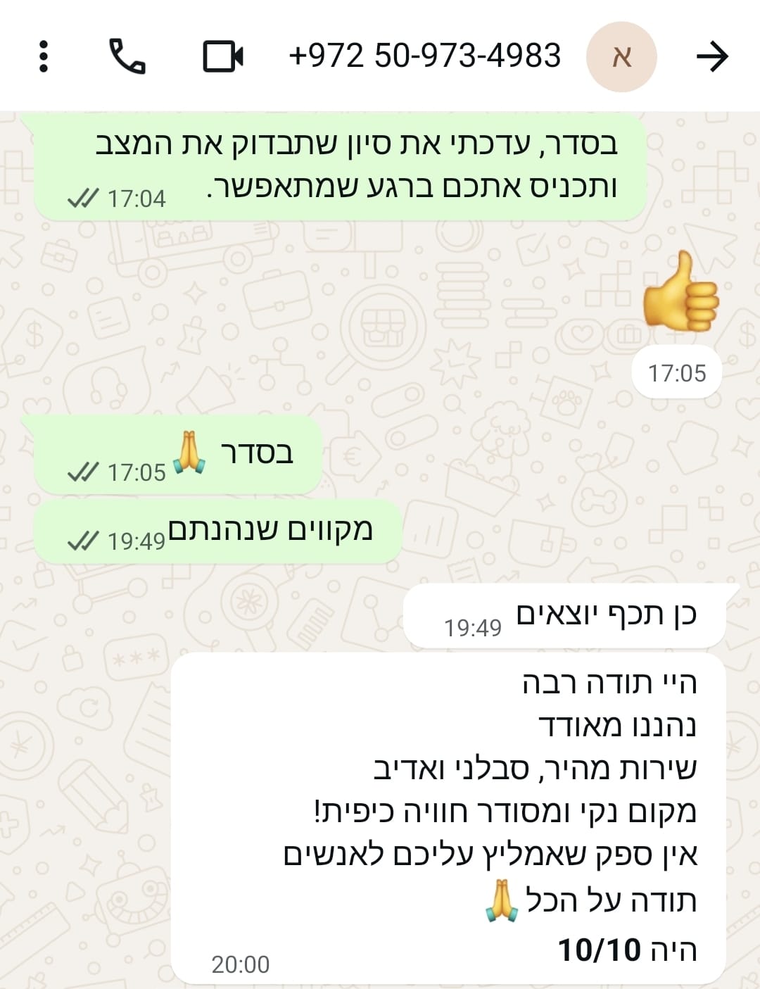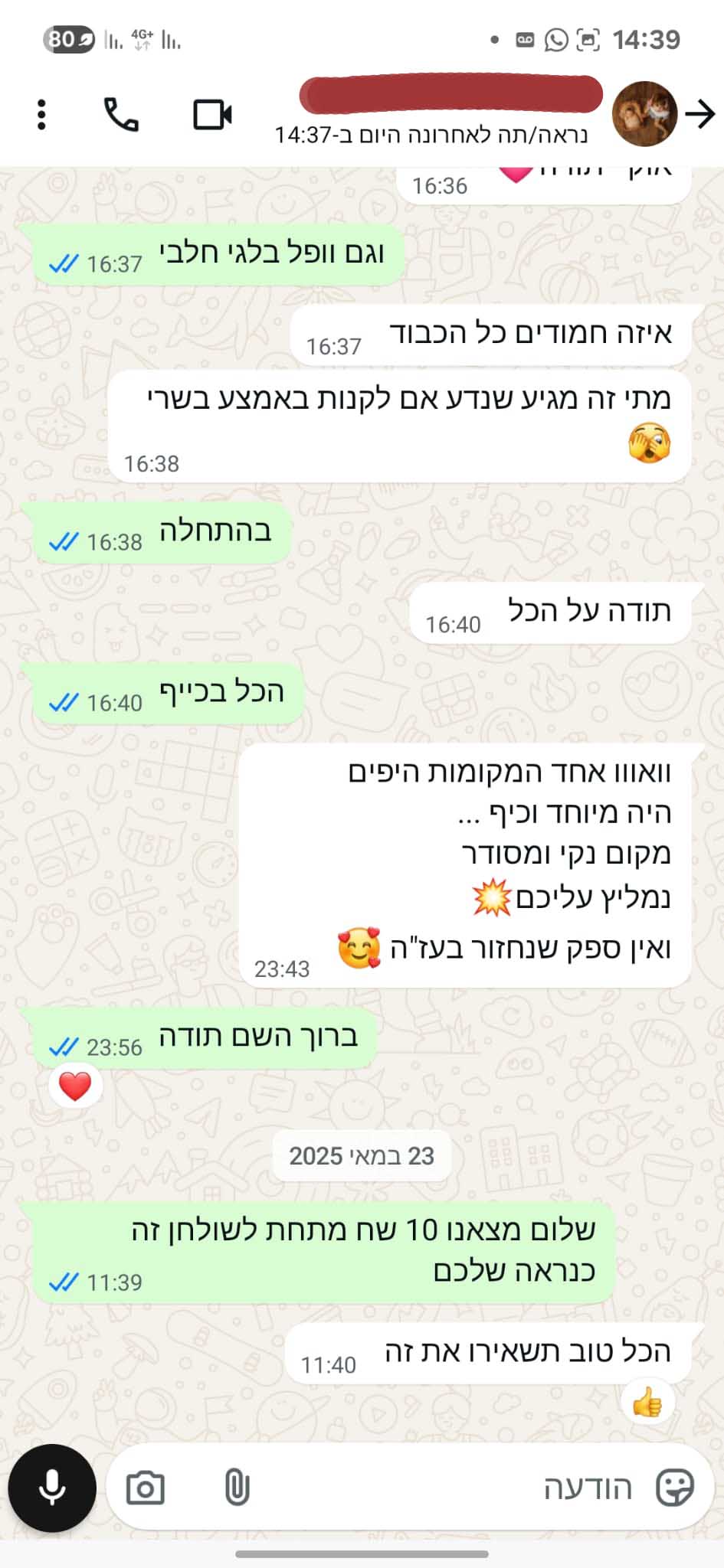 מקבלים את המתחם לשעתיים + חצי שעה להתארגנות, פרטיות VIP, כולל מגבות, כל אדם נוסף בתוספת 120 שח ( מוגבל ל 15 משתתפים) כל שעה נוספת 400 שח