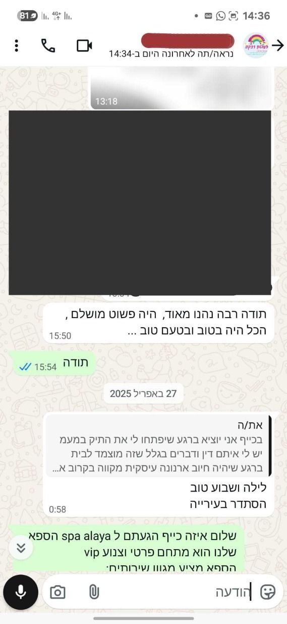 החבילה תקפה בימים ושעות הפעילות של הספא. יש לתאם מראש בהזמנה באתר או בנייד, ניתן לשלם באתר בסליקה מאובטחת.